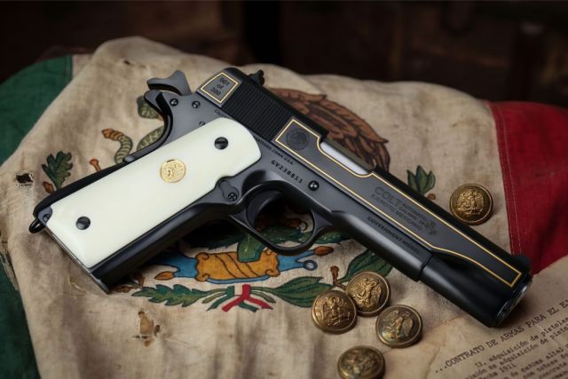 A: This is a serious reproduction. SK Customs is known for meticulous research and execution. This Centennial edition replicates the specific features, markings, and chambering of the original Colt contract pistols delivered to Mexico, making it a faithful tribute, not merely a cosmetic exercise.